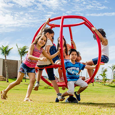 Equipamentos de lazer cuidadosamente projetados para estimular o desenvolvimento das crianças.
