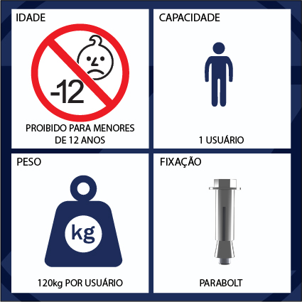 PESO MÁXIMO RECOMENDADO POR USUÁRIO: 120 Kg