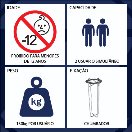 PESO MÁXIMO RECOMENDADO: 150 kg por usuário