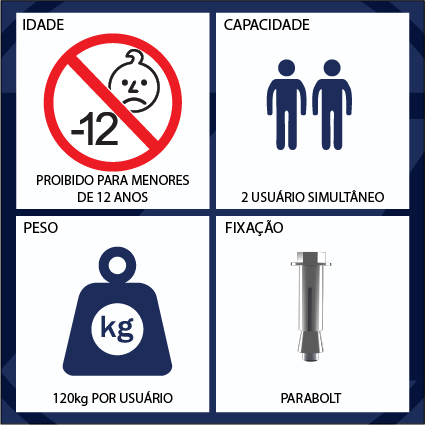 PESO MÁXIMO RECOMENDADO POR USUÁRIO: 120 Kg