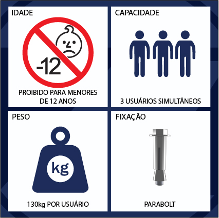 PESO MÁXIMO RECOMENDADO POR USUÁRIO: 130 KG