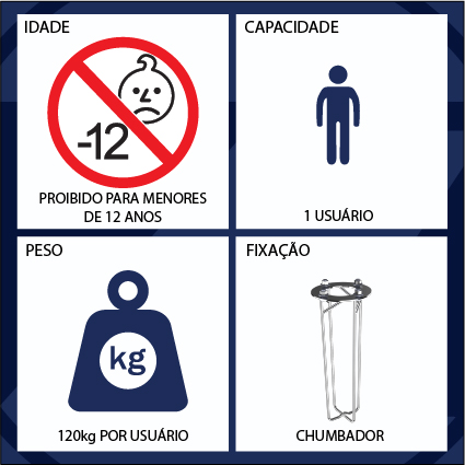 PESO MÁXIMO RECOMENDADO POR USUÁRIO: 120 Kg