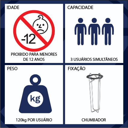 PESO MÁXIMO RECOMENDADO POR USUÁRIO: 120 Kg