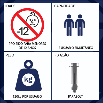 PESO MÁXIMO RECOMENDADO POR USUÁRIO: 120 Kg
