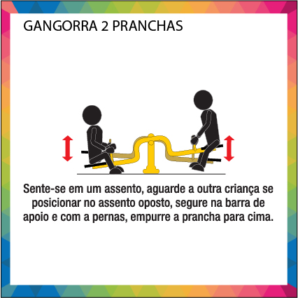 OBJETIVO: Promove fortalecimento das pernas e ensina a administrar a própria força em parceria com o amigo. Aqui, a inter-relação é bem importante, pois a brincadeira só acontece na parceria, que precisa ser negociada e administrada para chegar ao tempo e intensidade dos movimentos ideais.