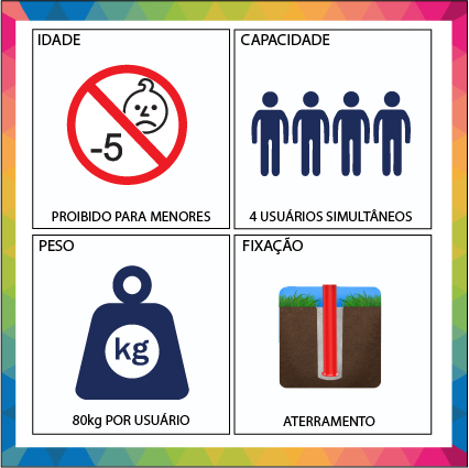 PINTURA: Tratamento com banho submerso a base de fosfato. Sistema de deposição de pó eletrostático com película protetiva de resina de poliéster termo-endurecível colorido.